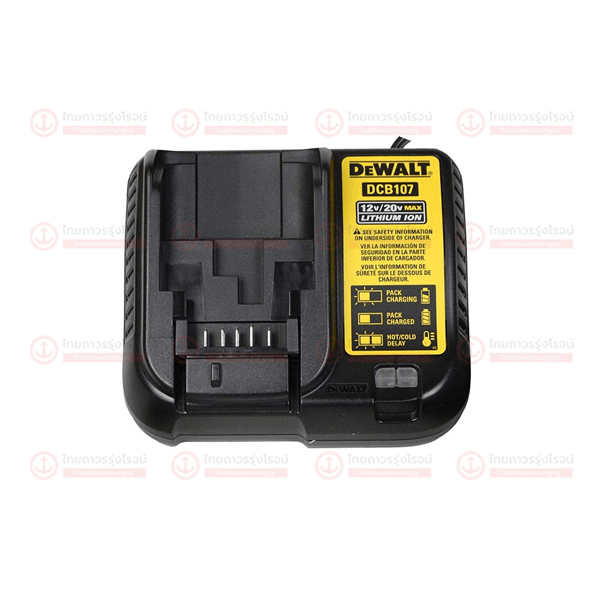 DEWALT แท่นชาร์จแบตเตอรี่ LI-ION 10.8v,12v,18v,20v 1.25Amp DCB107-B1 กล่องกระดาษ