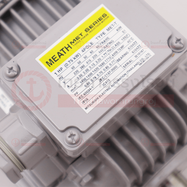 หน้าแรก MITSUBISHI MITSUBISHI มอเตอร์พัดลม MET-T 1HP 4P 220/380v 1450รอบ IP55